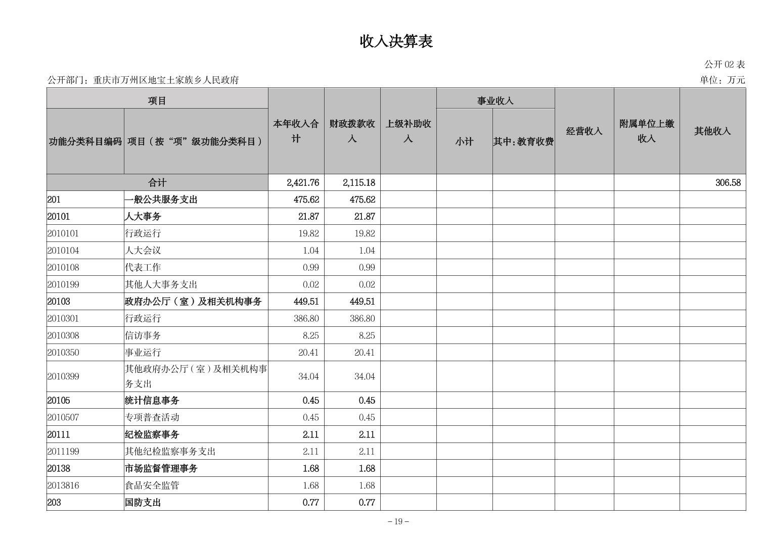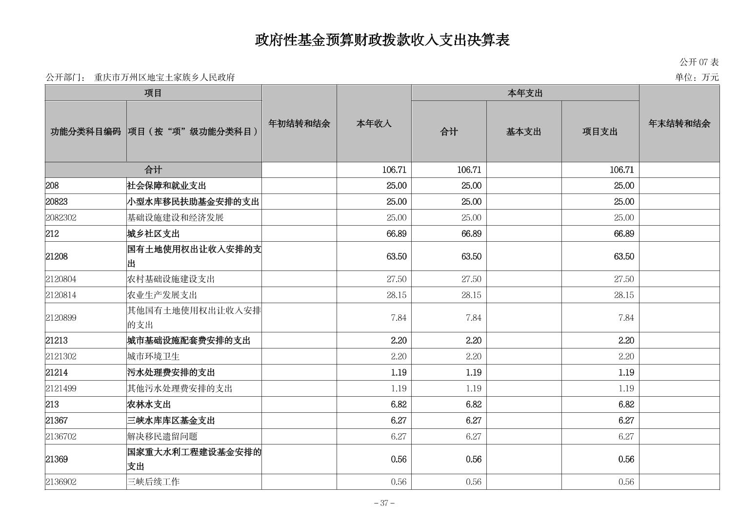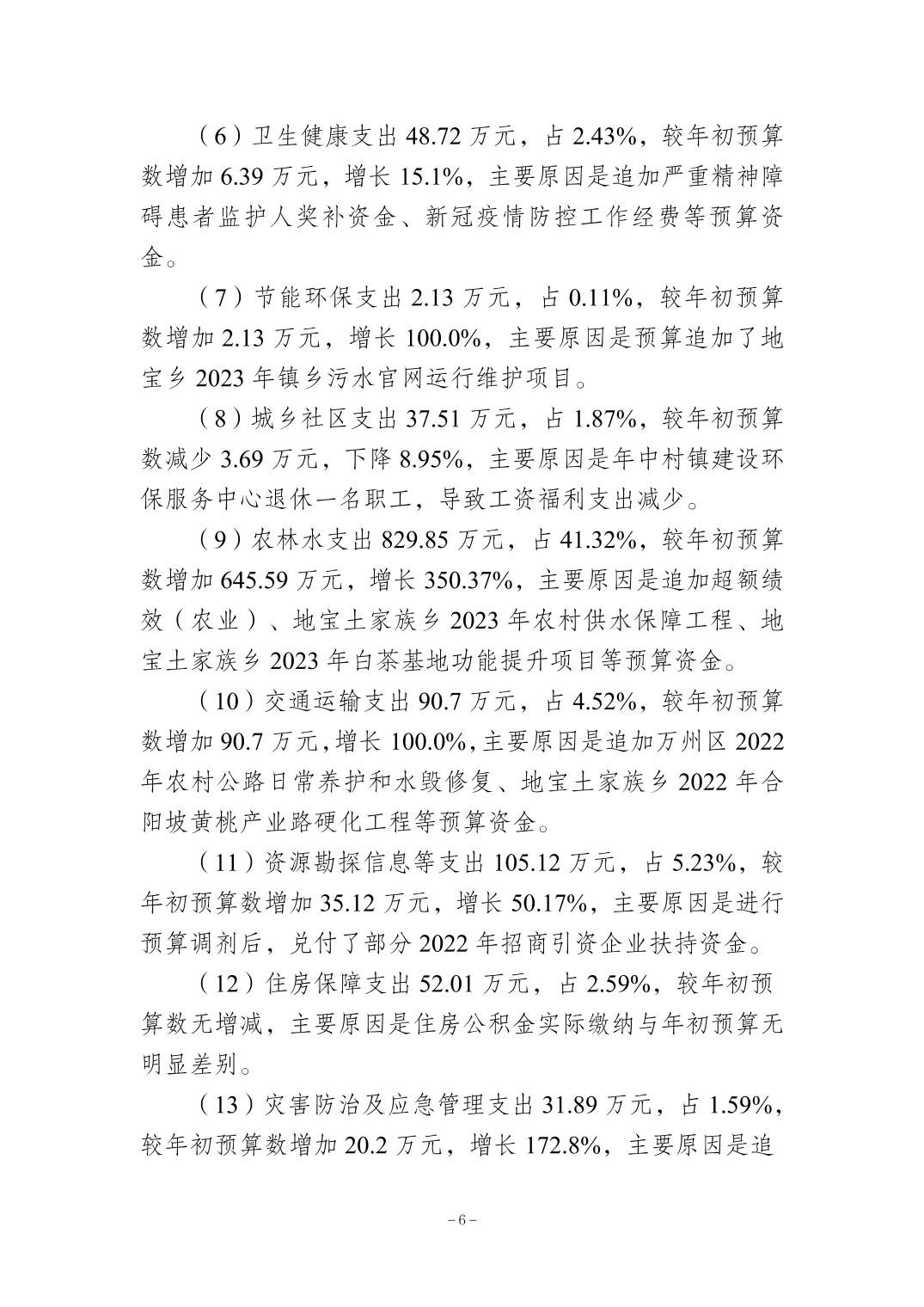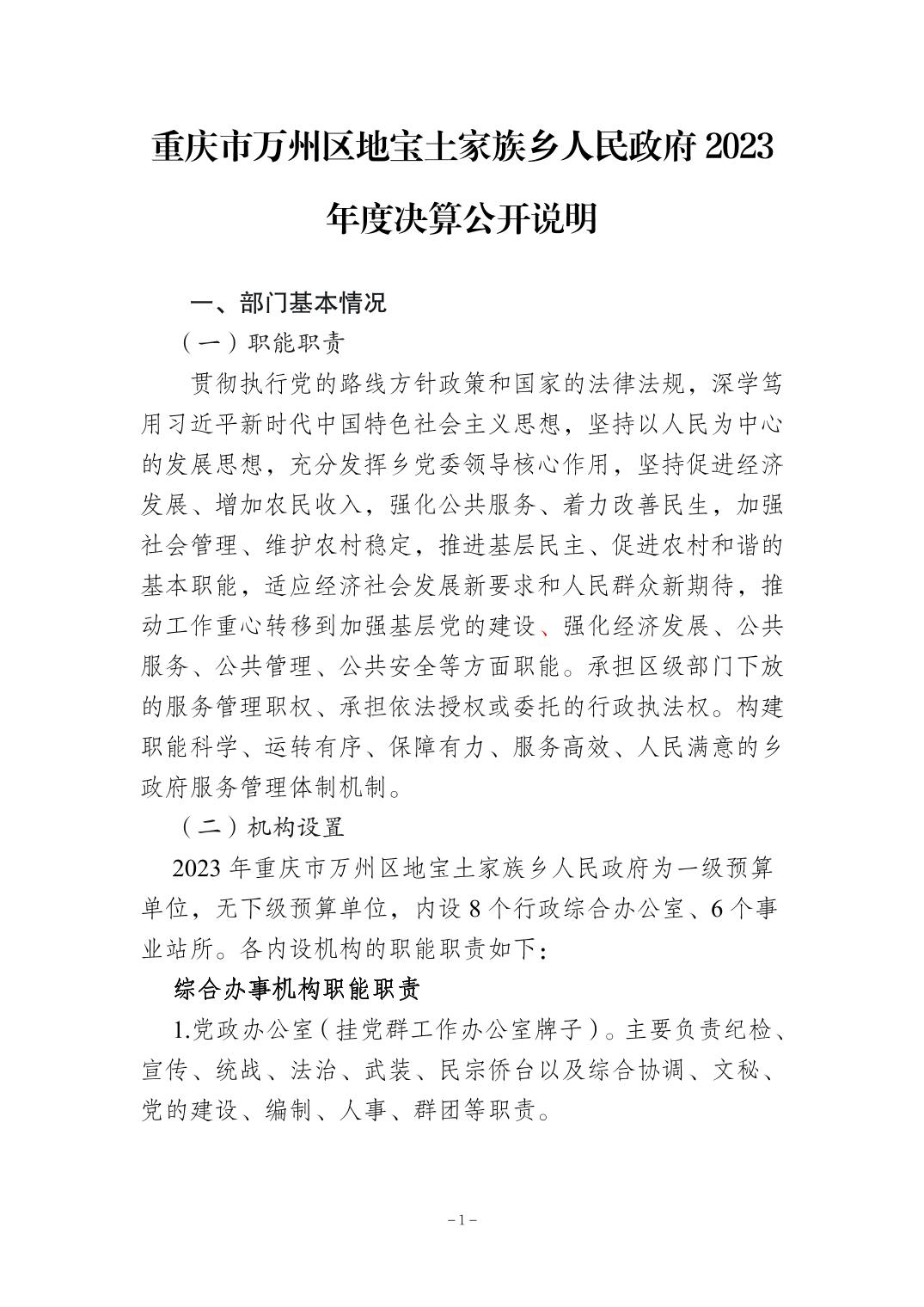 重慶市萬州區地寶土家族鄉人民政府2023年部門決算情況公示