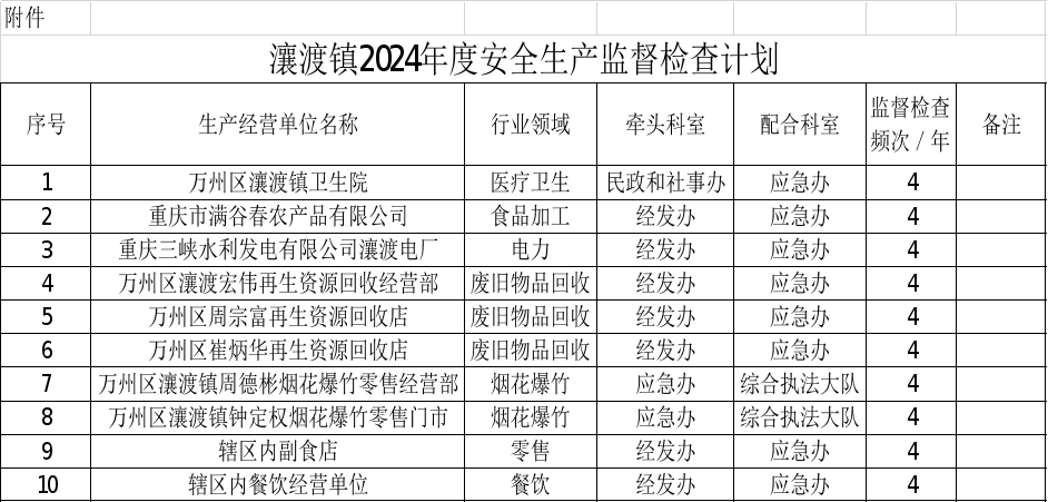 附件:瀼渡鎮2024年度安全生產監督檢查計劃