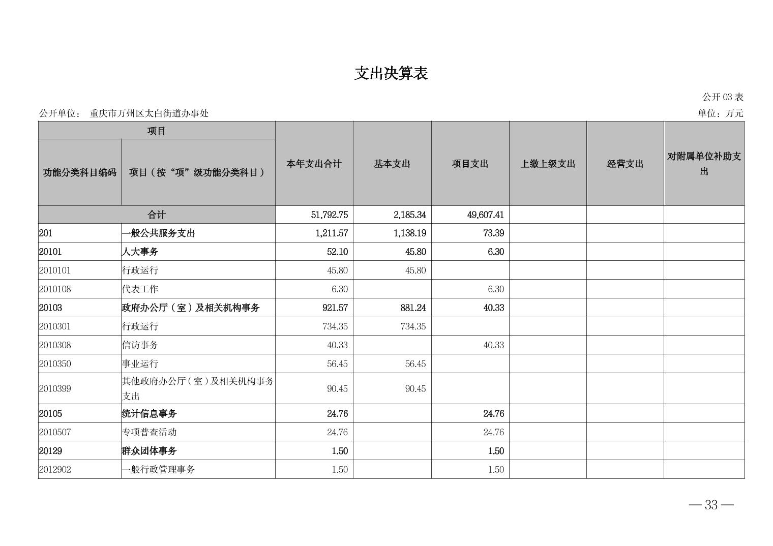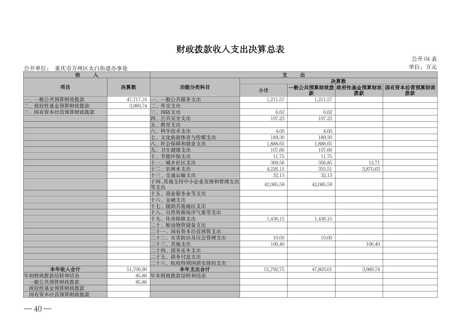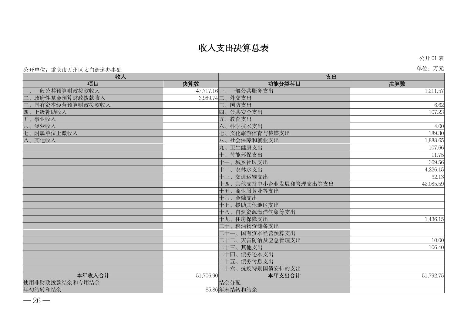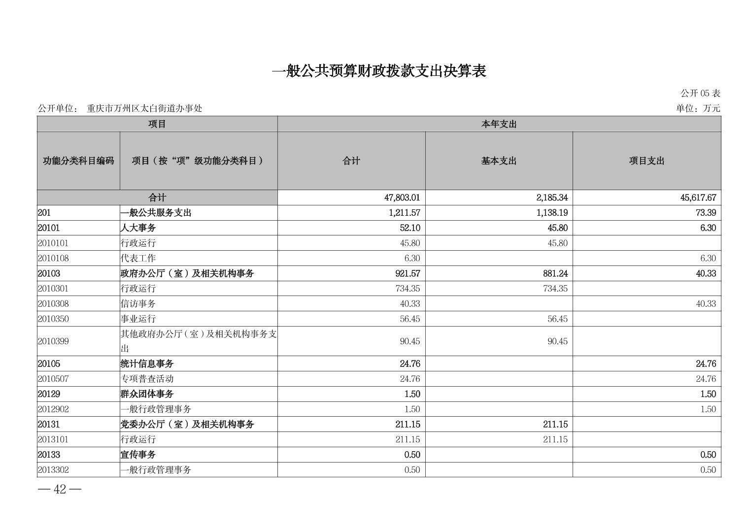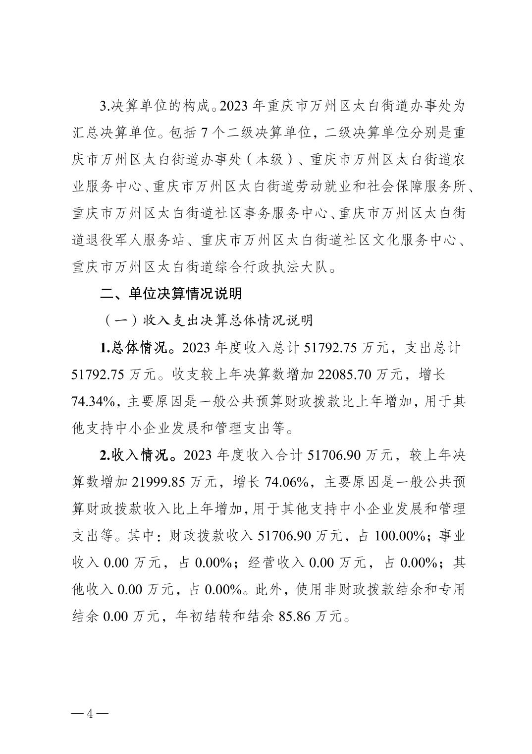 重慶市萬(wàn)州區(qū)太白街道辦事處 2023年度決算公開說(shuō)明