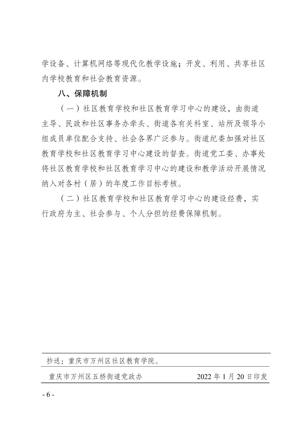 重慶市萬州區五橋街道辦事處關于印發《五橋街道社區教育學校和社區教育學習中心實施方案》的通知(失效)