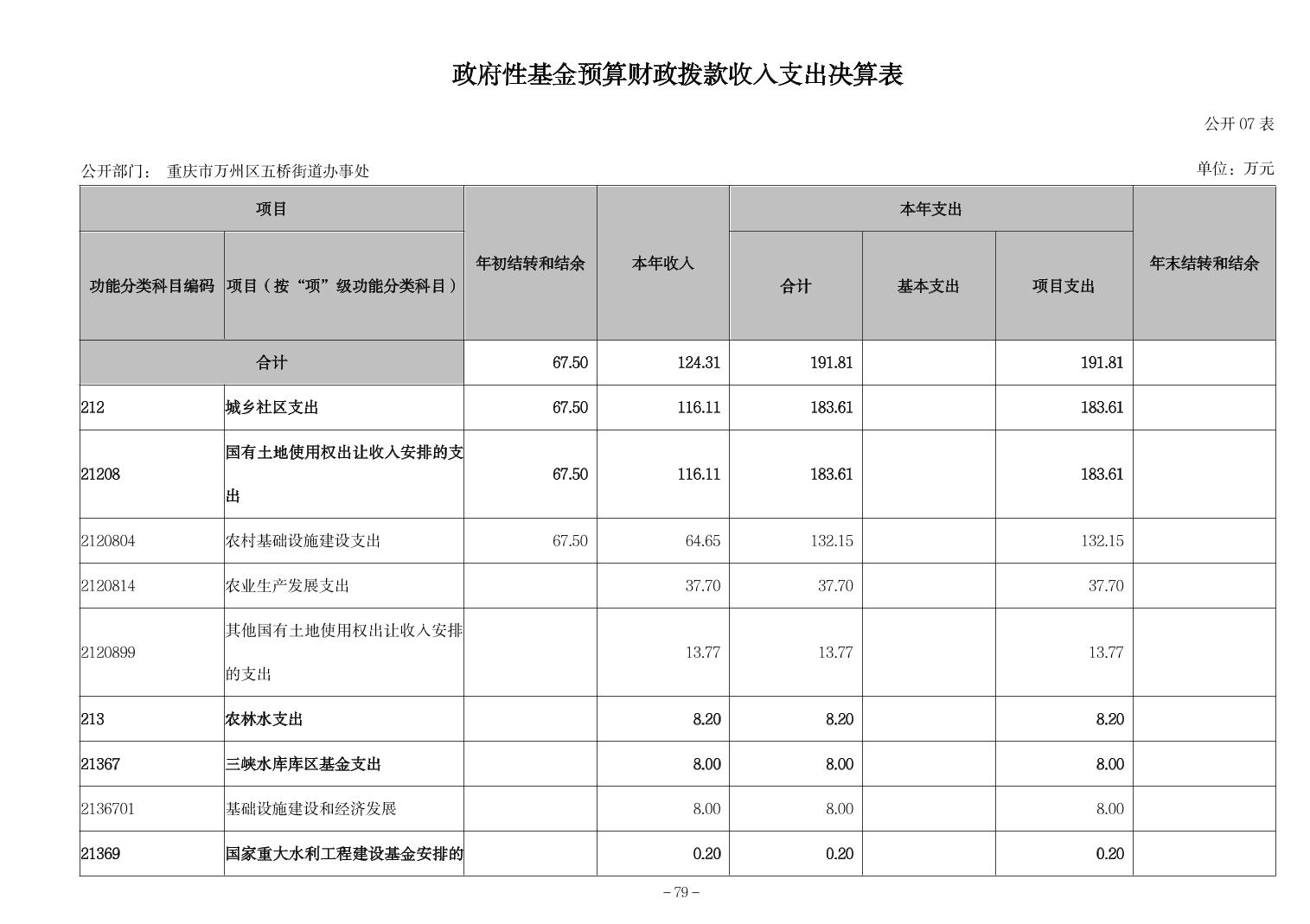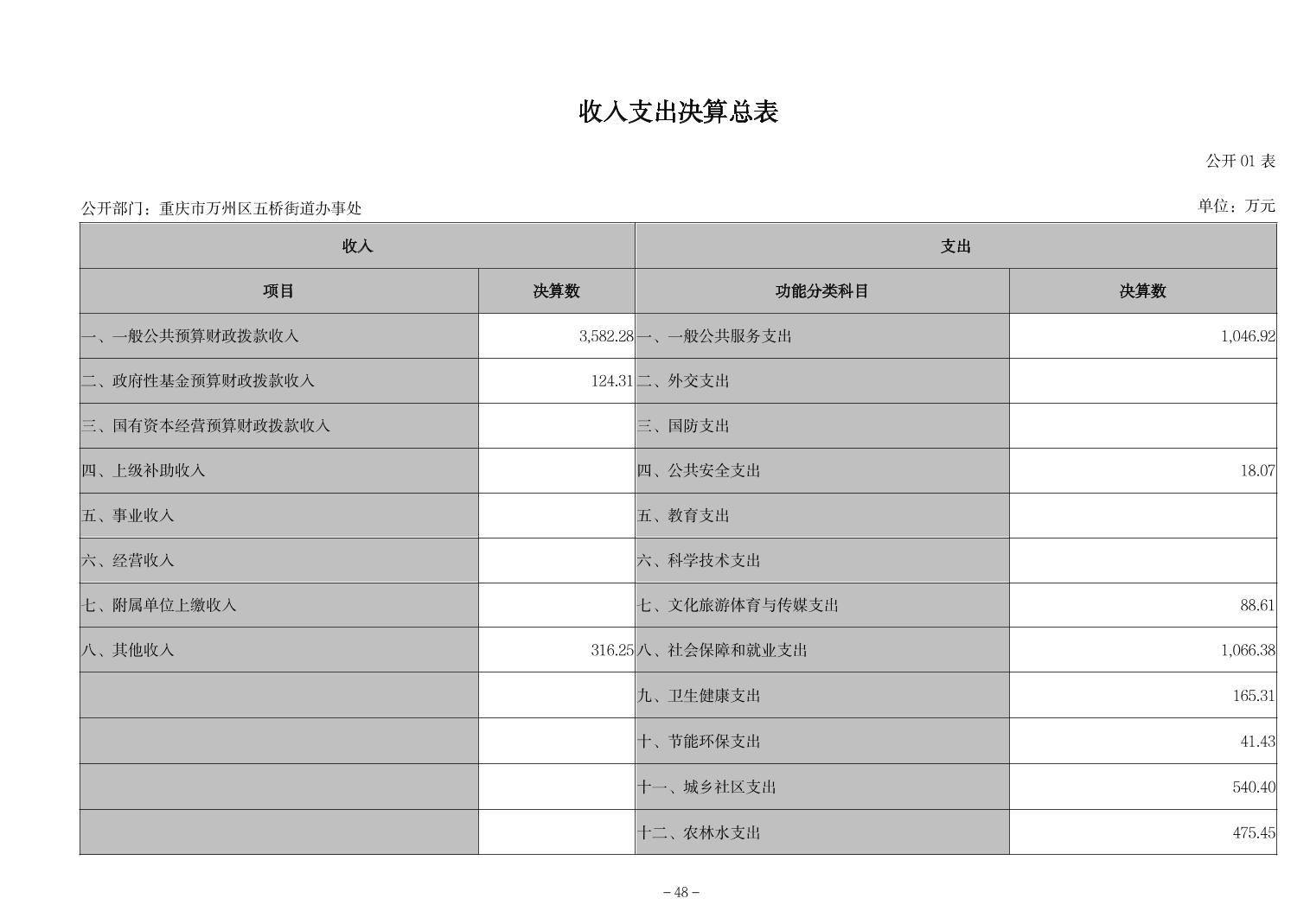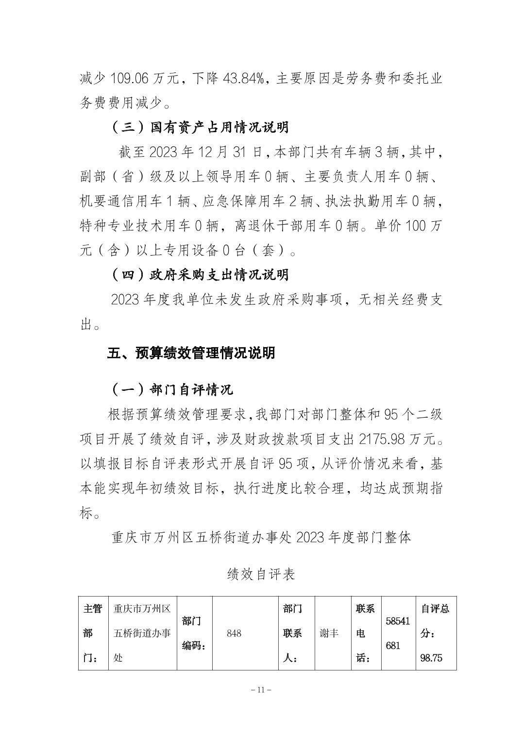 重慶市萬州區五橋街道辦事處2023年度決算公開說明
