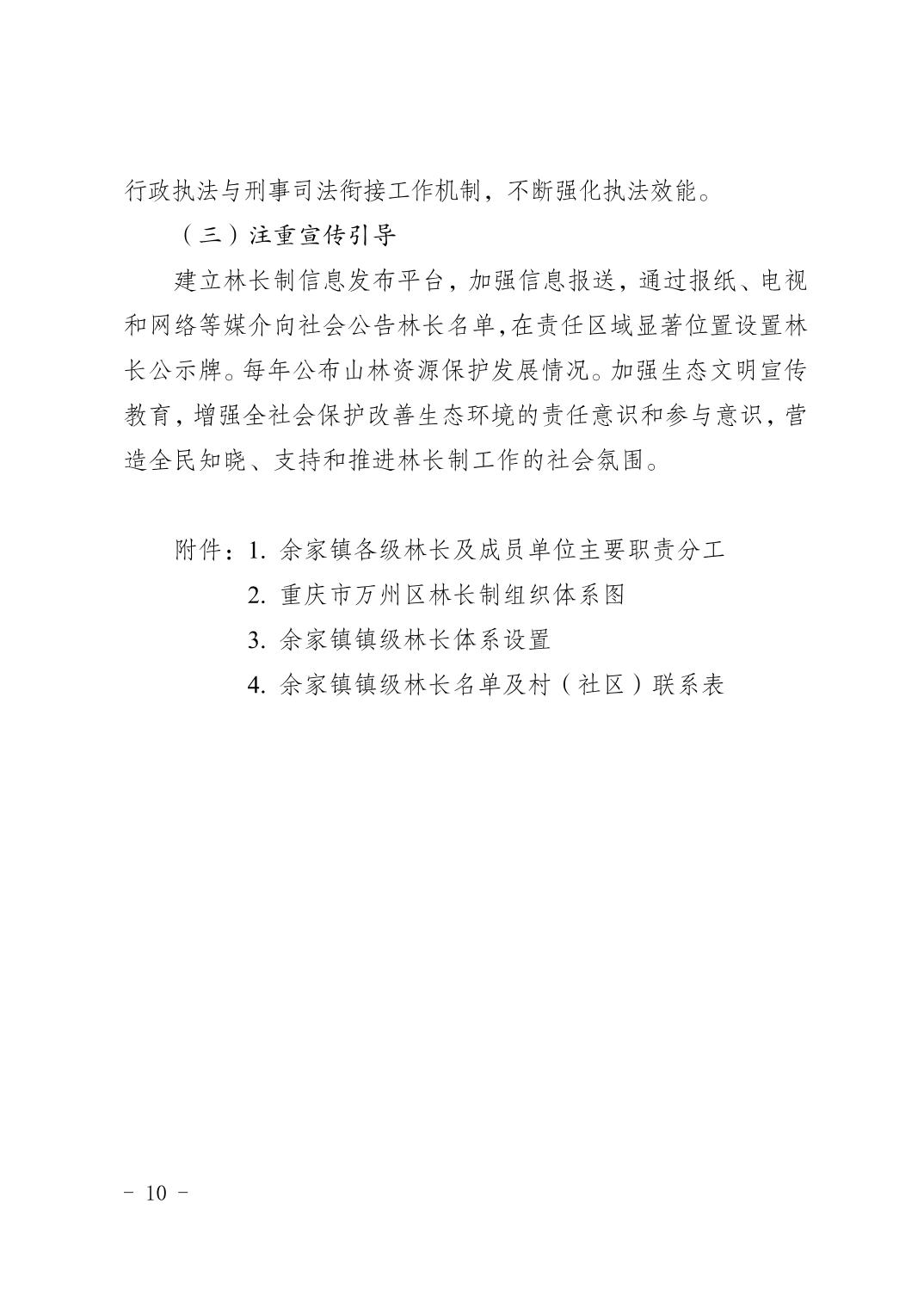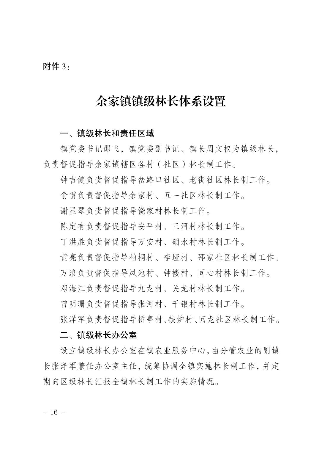 重慶市萬州區余家鎮人民政府 關于印發《余家鎮全面推行林長制 實施方案》的通知
