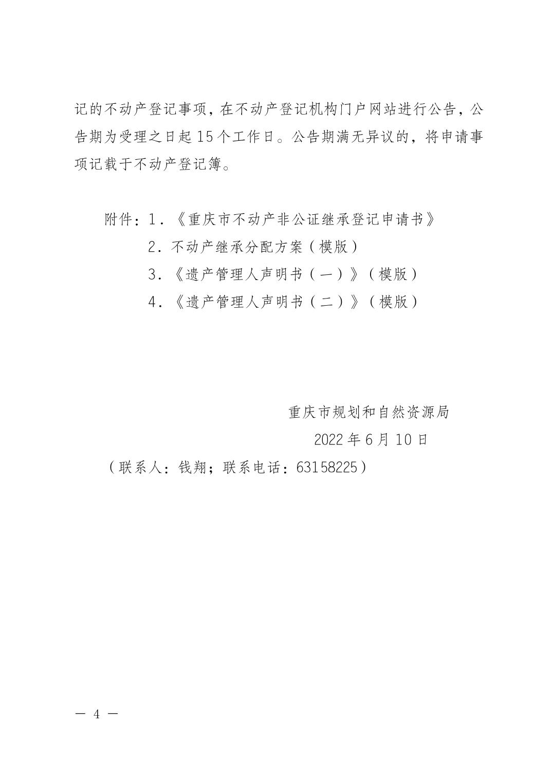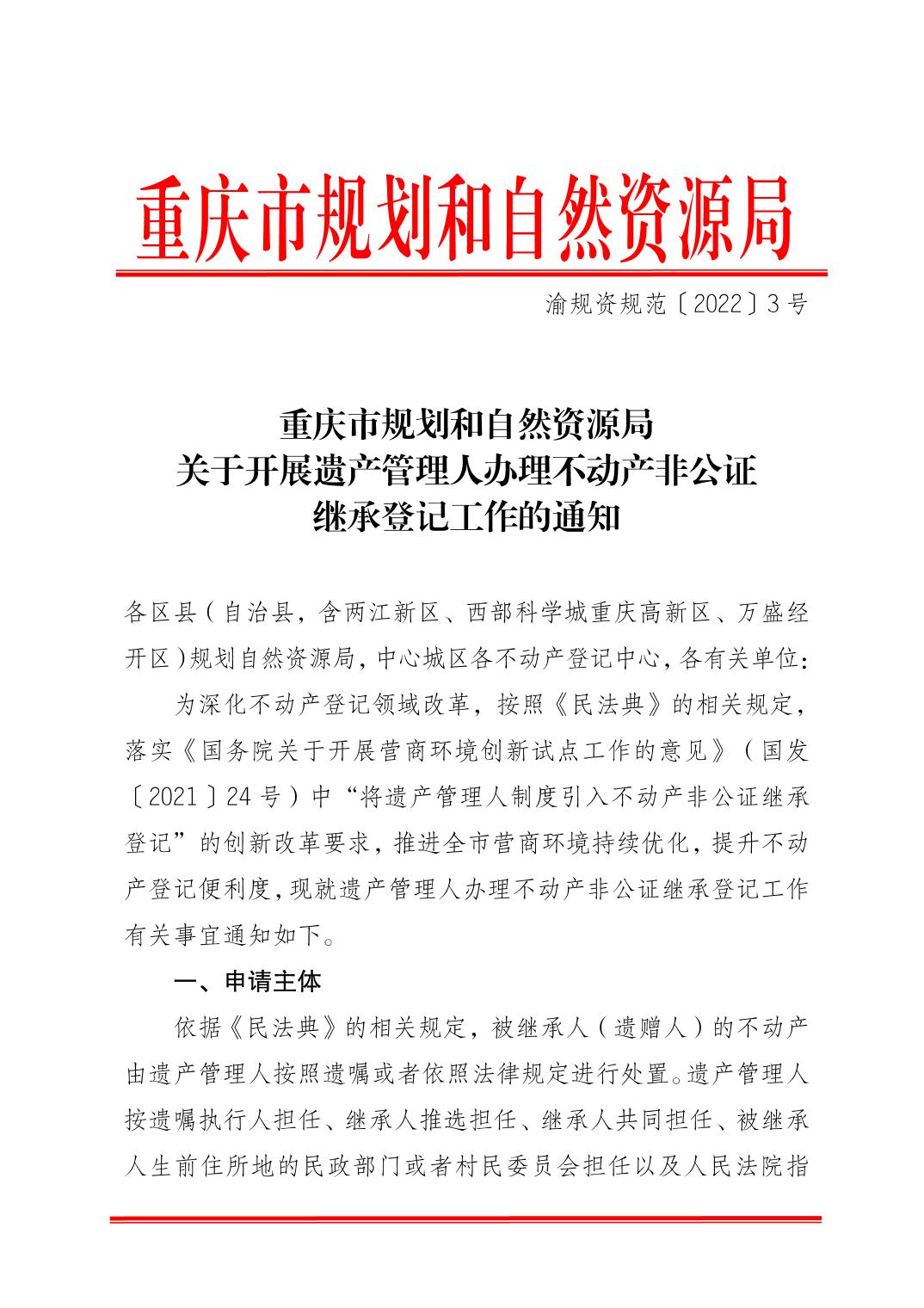 重慶市規(guī)劃和自然資源局關(guān)于開展遺產(chǎn)管理人辦理不動產(chǎn)非公證繼承登記工作的通知