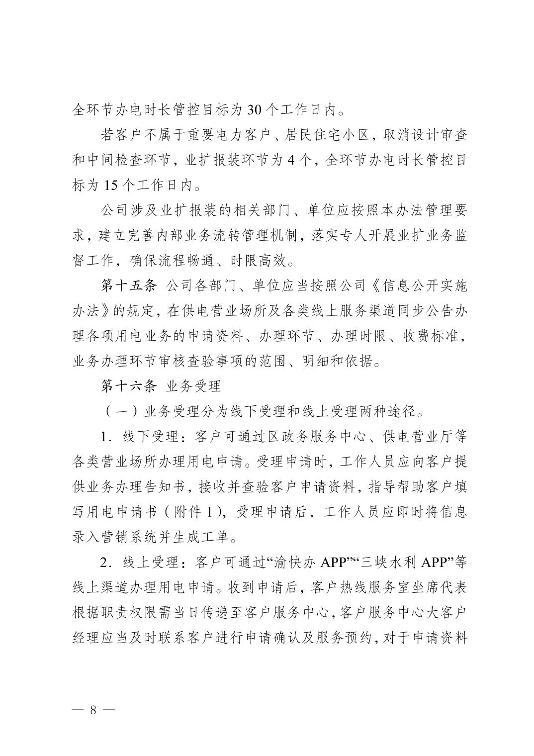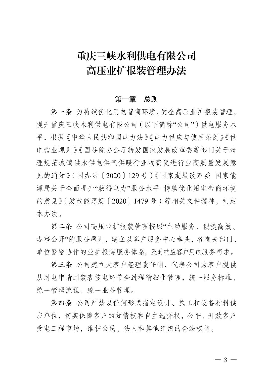 重慶三峽水利供電有限公司關(guān)于印發(fā)《高壓業(yè)擴(kuò)報(bào)裝管理辦法》的通知