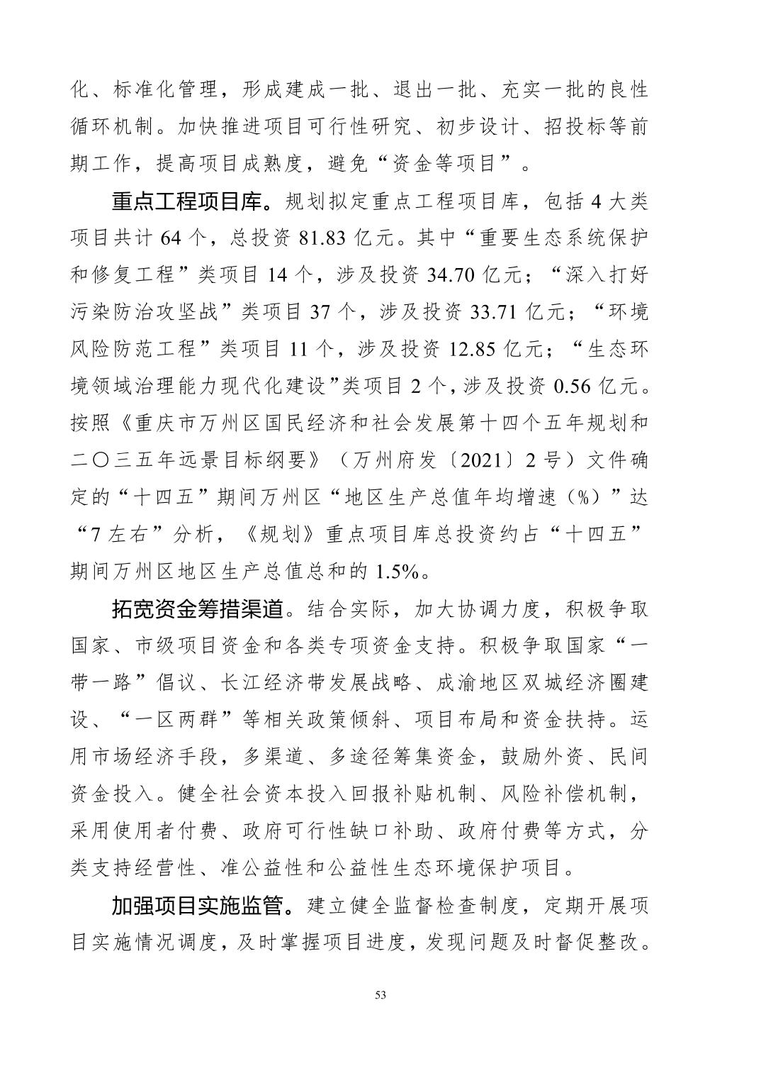 重慶市萬州區(qū)生態(tài)環(huán)境保護(hù)“十四五”規(guī)劃(2021-2025年)