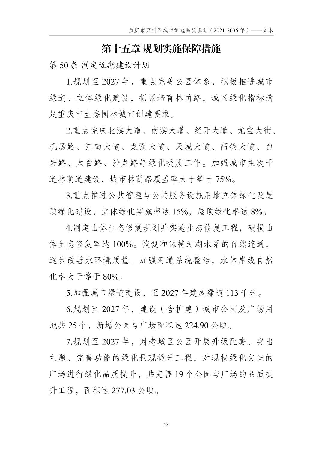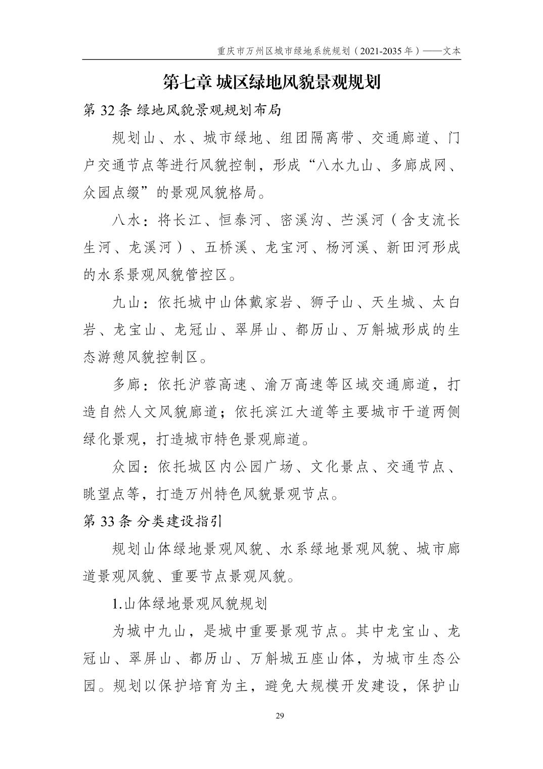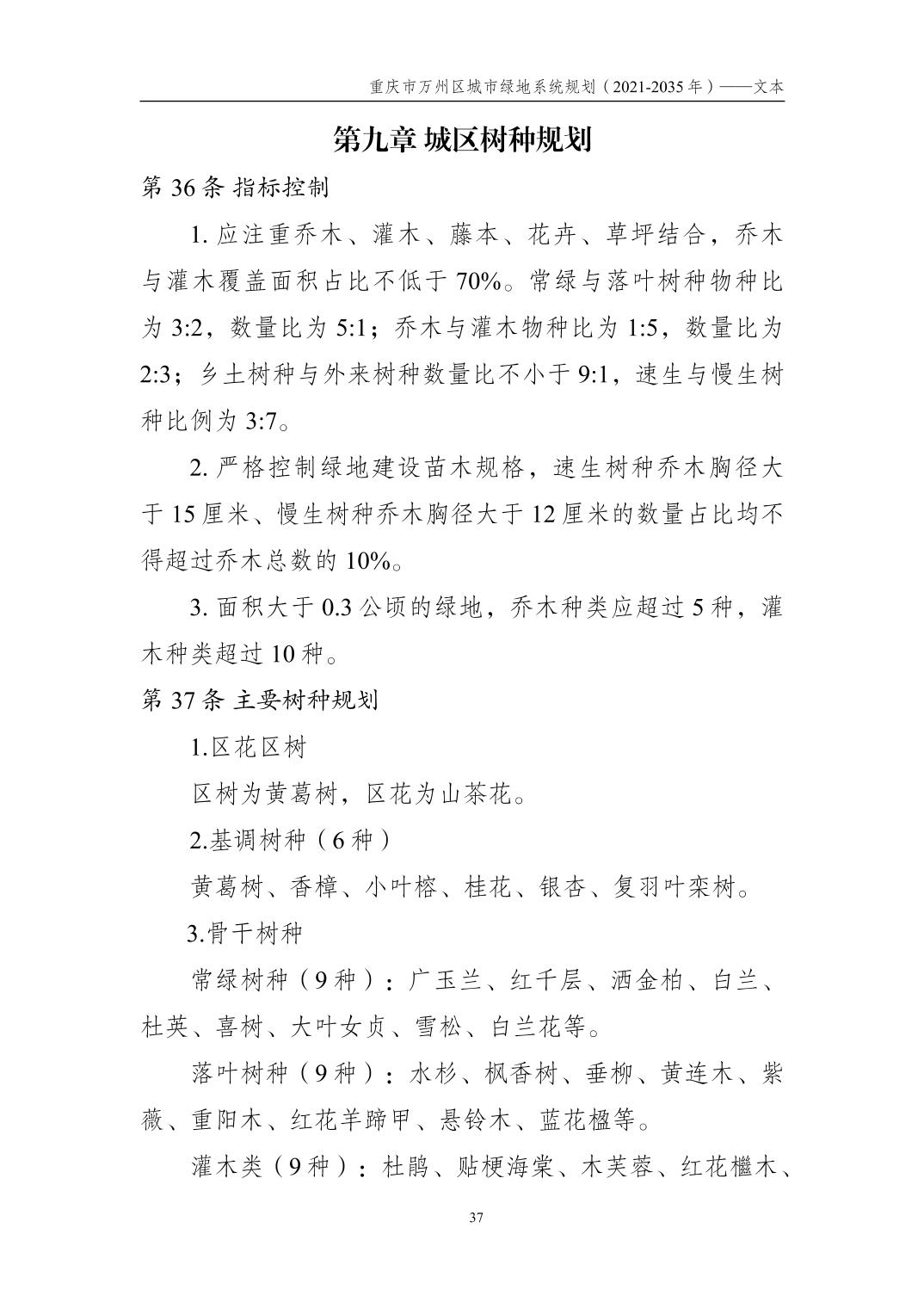 關于印發《重慶市萬州區城市綠地系統規劃(2021—2035年)》的通知