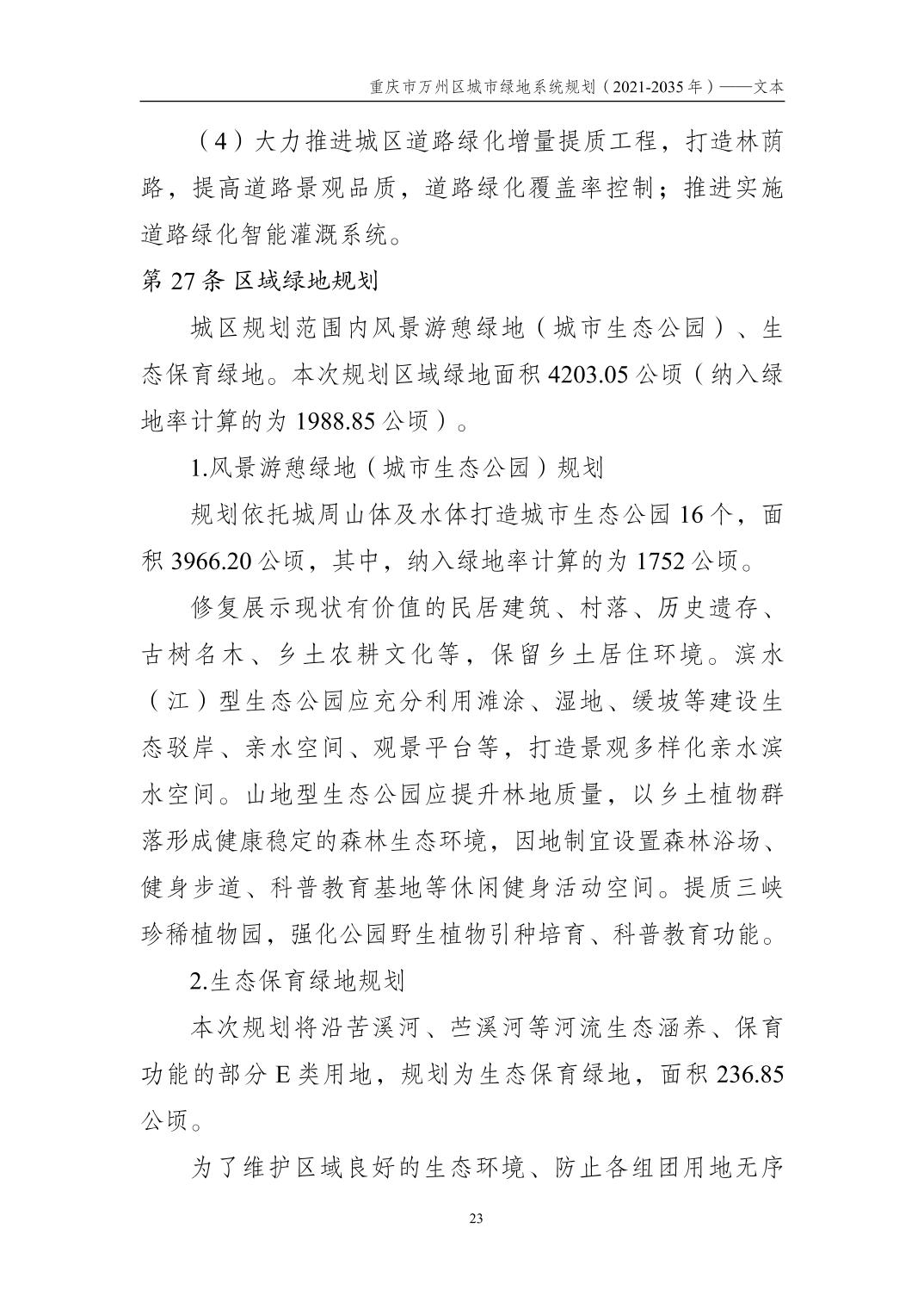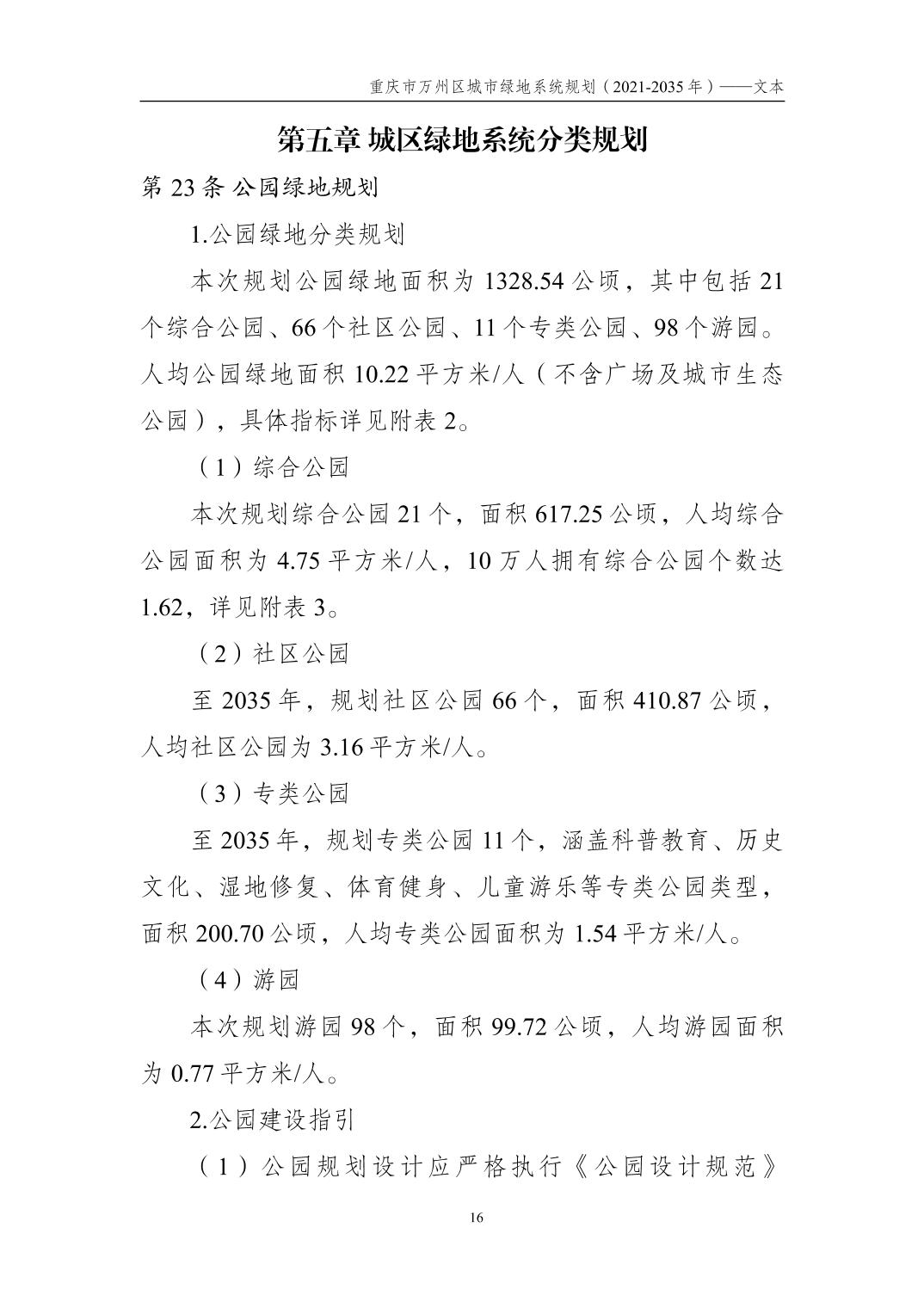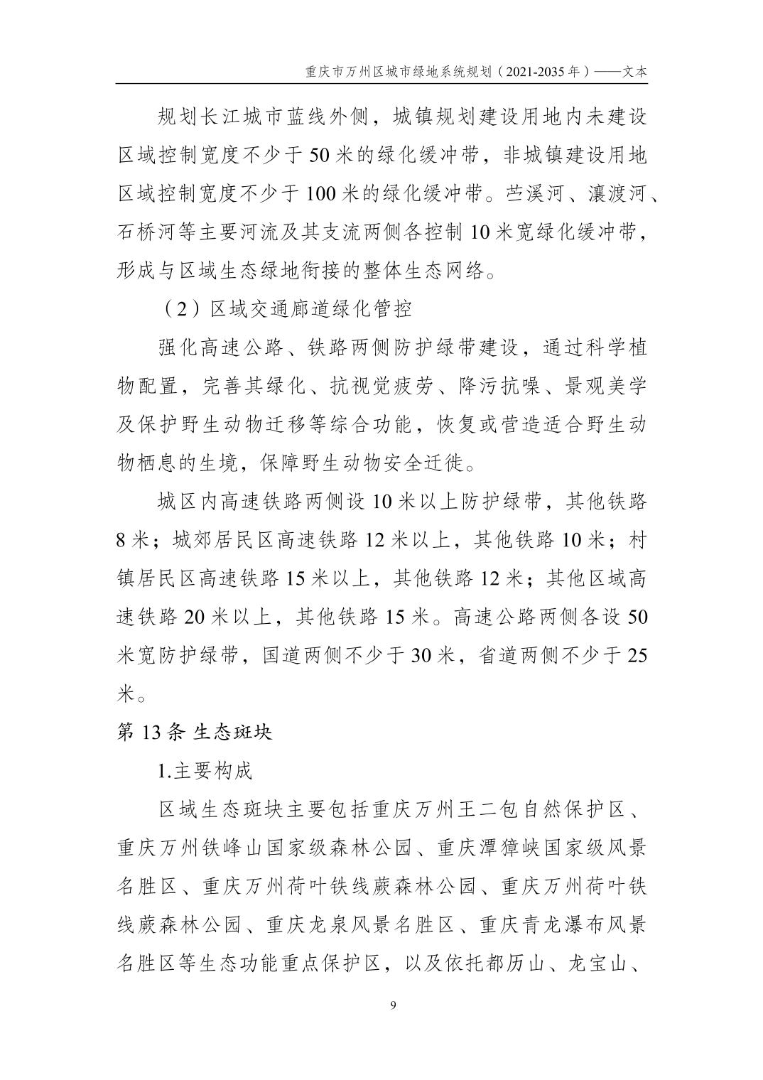 關于印發《重慶市萬州區城市綠地系統規劃(2021—2035年)》的通知